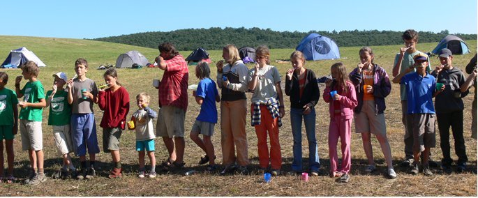 A melengető napsugarak mellett a természet más tüneményivel is igyekszik a gyerekeket már kora reggel előcsalogatni sátraikból. A Bükk-hegységre jellemző madárfauna leginkább énekes- és egyéb kisebb testű madarakból áll. Így aztán reggelente gyakran megesik, hogy a fülemüle, a citromsármány, a barátposzáta, vagy éppen a sárgarigó dalára ébrednek a táborlakók. Az éles szemű érdeklődők a tábor közelében a 10 nap alatt mintegy 46 madárfajt figyeltek meg, többek közt tövisszúró gébicset, vörösbegyet, gyurgyalagot, hollót és a környékre egyáltalán nem jellemző harist, mely még a szakmai program vezetőjét is alaposan meglepte. A víztározónak hála, vízimadarakat is megleshetünk szép számmal (búbos vöcsök családot, törpegémet, tőkés récét, vízityúkot), ezek a gyerekeknek talán könnyebben megfigyelhetőek. A program során az érdeklődők megismerkedhettek a távcső- és határozóhasználat csínjával-bínjával és remélhetőleg a következő reggel már ismerősként köszönti őket a hajnali madárszó.